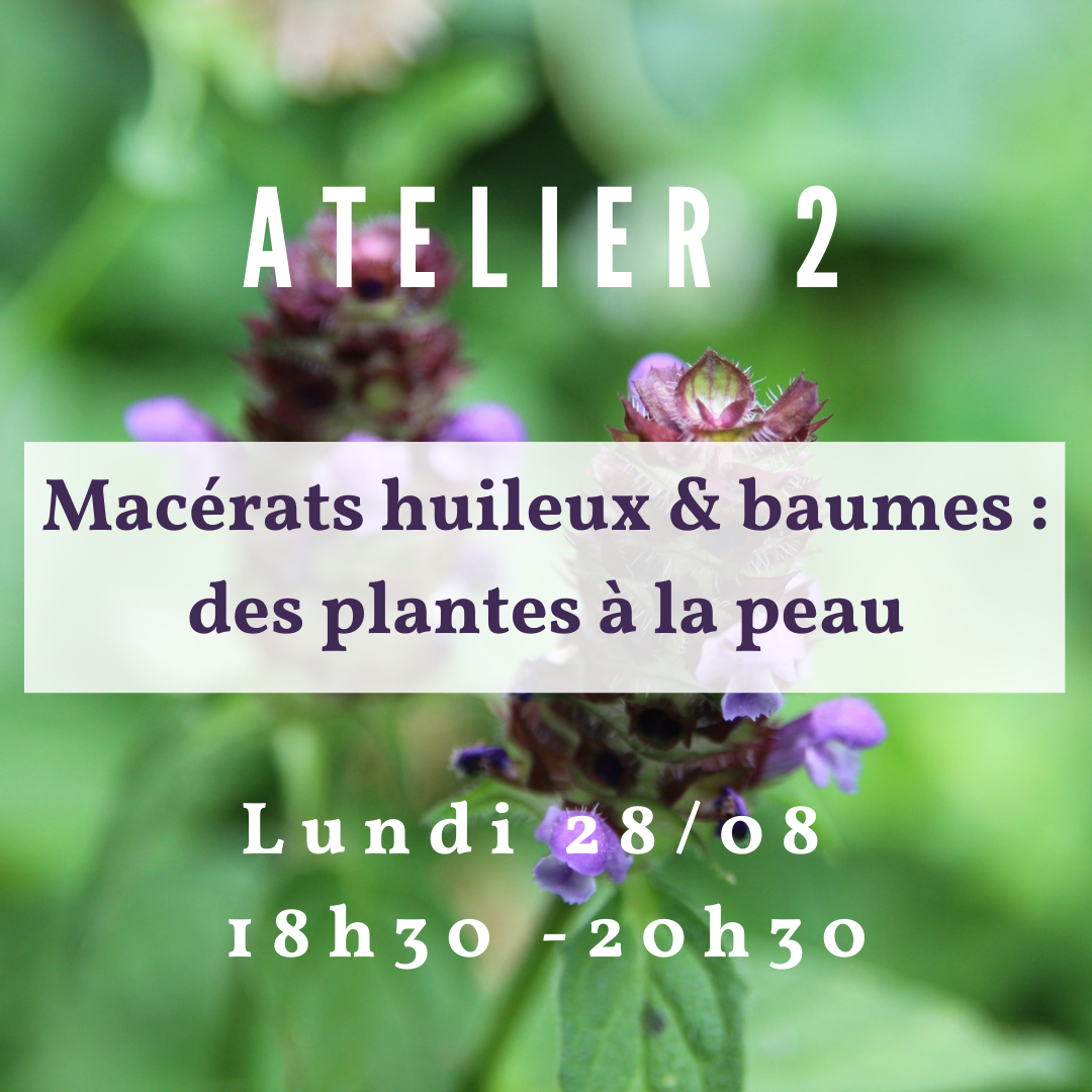 Lundi 28/08 de 18h30 à 20h30 : ATELIER “Macérations huileuses et baumes : des plantes à la peau” à la Droguerie Menneçoise