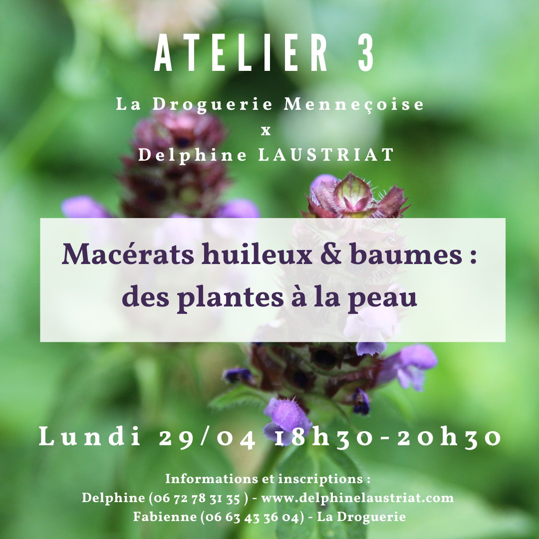 Lundi 29/04 18h30-20h30 : ATELIER #4 Macérations huileuses et baumes : des plantes à la peau à la Droguerie Menneçoise